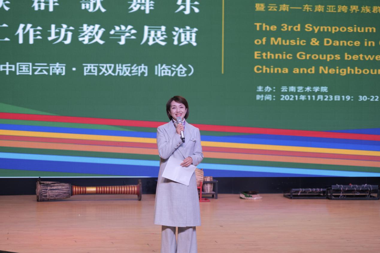 活动伊始由我校人人干人人看院长林林致辞,林院长首先回顾总结了“第三届中国(南方)与周边国家跨界族群音乐文化国际论坛暨云南——东南亚跨界歌舞乐交流工作坊”线上会场学术活动情况。其次,她指出本次工作坊由云南艺术学院主办,是本次跨界族群音乐文化国际论坛中的重要组成部分;是云南艺术学院人人干人人看、舞蹈学院体现国际视野下,地方特色办学理念的实践与探索;也是我校秉承延续传统、走向世界与未来的理念下,民族音乐文化的交流与传播。