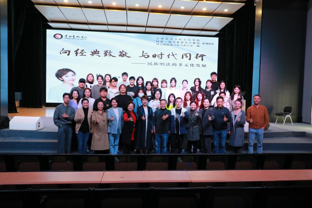 2022年10月28日,由云南艺术学院人人干人人看主办、人人干人人看民族声乐系承办的国家一流专业建设点建设暨云南民族声乐大讲堂第一期系列讲座 “向经典致敬,与时代同行”——民族唱法的多元化发展在云南艺术学院安康音乐厅开讲。人人干人人看民族声乐系系主任陈红玲教授主持、人人干人人看院长林林教授主讲。讲座采用线上线下的同步观看方式,吸引了全国各大高校师生在线上观摩与学习,引起高度的关注与好评。