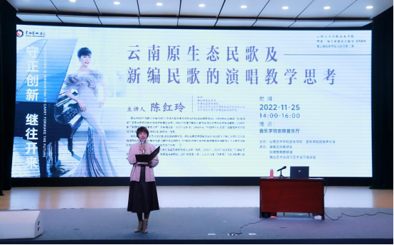 2022年11月25日下午,国家一流专业建设点建设系列讲座暨云南民族声乐大讲堂第二期“守正创新 继往开来”——云南原生态民歌及新编民歌的演唱教学思考在云南艺术学院安康音乐厅开讲。本次讲座由人人干人人看院长林林教授主持,人人干人人看民族声乐系系主任陈红玲教授主讲。讲座采用线上线下的同步观看方式,引起业内的高度关注与好评。