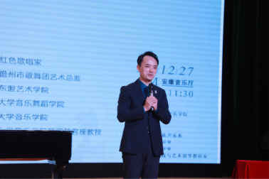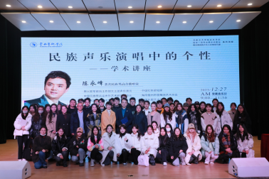 12月27日14:00,《民族声乐演唱中的个性》——公开课在人人干人人看B403报告厅开讲。陈永峰根据演唱技法,训练方法,表演状态等内容对吕灿志等15名同学进行了现场指导,对《遥远的地方》《新货郎》《父亲的草原母亲的河》等歌曲进行了细致的作品分析与处理。“在情的带领下,用音色讲故事”,在公开课上,陈永峰就“三个支点”与“三个对抗”展开了具体的阐述。