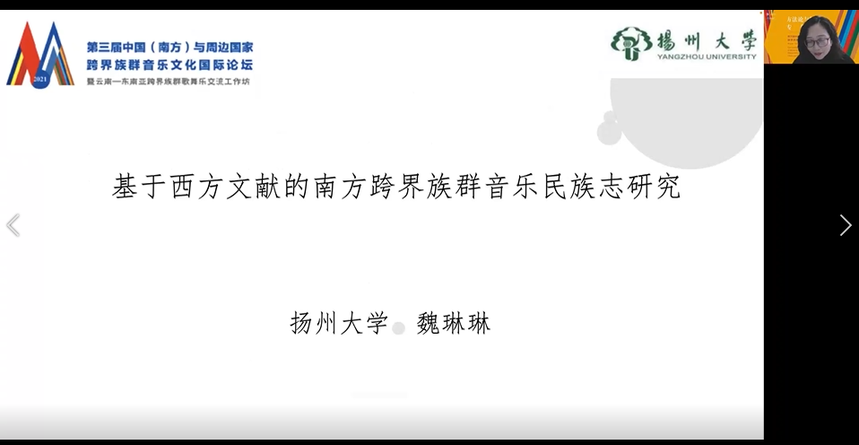 一组首先是湖南第一师范学院/中国人人干人人看杨红教授做了《从分散到集合:跨界族群音乐民族志的跨学科路径》发言,其从研究理念、研究对象以及研究主题的变换等方面详细说明跨界族群音乐民族志不是建构书写的固定模式,而是寻觅并呈现出更为丰富而准确、更有创造性思维和学术价值的跨界族群音乐共同体图景;华南师范大学的董宸老师以《中、泰南传佛教祭奠仪式音声的文化复合性研究》为例,通过西双版纳召庄村寨佛寺圆寂高僧周年祭奠仪式音声和清迈布帕兰寺圆寂高僧周年祭奠仪式音声两个案作比较研究,引出复合宗教文化观众的仪式音声是怎样构成的;扬州大学魏琳琳教授《基于西方文献的南方跨界族群音乐民族志研究》,详细地梳理了西方学者对于南方跨界族群音乐民族志研究的各类代表性文献,通过介绍西方文献中的中国西南少数民族研究、西方学者的跨界族群音乐民族志、湄公河流域的节庆仪式音乐,对西方文献中主题研究的文本、音乐元素的挪用及本土化的重建研究,在不同层次上增强了文化认同;中央民族大学楚高娃教授《回顾与展望——蒙古族音乐跨界比较研究现状综论》一文以中、蒙古族个案为研究对象,总结个案研究成果,并对此研究中关于研究理念的改观、研究对象的拓宽和研究方法的探索都提出了宝贵的建议;新西兰奥塔哥大学的华慧娟老师在《苗族音乐与文化在海外研究的概况——基于中国西南苗族与东南亚苗族(Hmong)离散群体的音乐文化综述》一文中,从苗族历史及族群概况中总结概括关于苗族的一系列研究,为后期学者对苗族的研究提供了宝贵的文献资料。