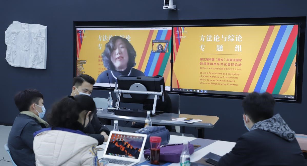 2021年11月22日下午,第三届中国(南方)与周边国家跨界族群音乐文化国际论坛暨云南—东南亚跨界族群歌舞乐交流工作坊方法论与综论组在云南艺术学院智慧教室第二分会场,以线上线下相结合的方式进行会议讨论。该场会议共分为一组和二组,一组由曹量教授主持会议,张应华教授评议。