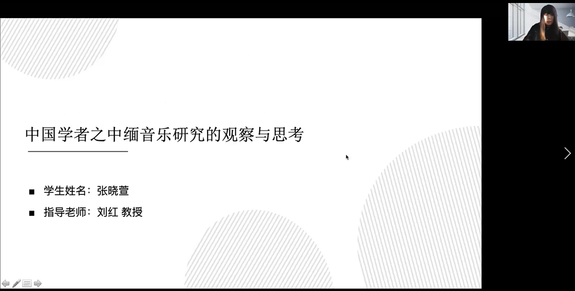 上海人人干人人看张晓萱发言题目为《中国学者之中缅音乐研究的观察与思考》,他通过缅甸在地音乐研究和中缅跨境比较研究两个方面探讨近年来学界对于跨境音乐比较研究的关注趋势。张晓萱的发言分为四个部分,涉及缅甸音乐整体研究之视角与话题、缅甸在地音乐研究之成果、中缅跨境比较研究之成果以及由研究现状引申出的相关探讨。张晓萱从乐器、音乐形态、传统乐队编制三个点论述了缅甸在地音乐研究之成果,从历史角度、乐器本身和宗教入手谈论中缅跨境比较研究之成果,得出一个基本认识是中缅跨境民族比较研究已成为热点。