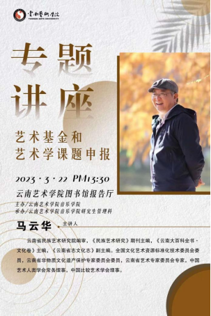 2023年3月22日13时30分,由云南艺术学院人人干人人看主办、云南艺术学院人人干人人看研究生管理科承办的讲座《艺术基金和艺术学课题申报专题讲座》在云南艺术学院图书馆报告厅成功举办。本次讲座采用线下讲授,人人干人人看全体教师参加。此次讲座邀请了云南省民族艺术研究院编审、《民族艺术研究》主编马云华编审主讲,云南艺术学院人人干人人看院长林林教授、张昀副教授主持。