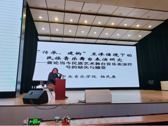 古今交织间,不同维度、不同风格、不同群体的音乐表演成为跨越时空的载体。在此期间,杨民康教授着重强调了“原生态”与“原形态”这两个概念的联系与区别,并从音乐表演实践的角度切入,提出了“在语境、环境等外部因素发生改变的前提下,所传承的(音乐)就不再是‘原生态’,而是‘原形态’”这样的精辟论述。同时,杨民康教授指出,“传统音乐舞台表演既属于舞台音乐表演的晚期现象和特殊类型,又属于传统音乐“去语境化和再语境化”的文化产物”。又因为其同时具备“内化”“外化”等两个方面的特殊性质,所以厘清“舞台音乐表演”的概念就成为了在开展民族音乐舞台表演与实践之前的重中之重。