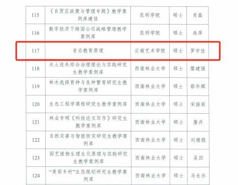 根据《云南省学位委员会云省教育厅关于公布2023年度云南省研究生优质课程建设项目名单的通知》(云学位【2023】7号)《云南省学位委员会 云省教育厅关于公布2023年度云南省专业学位研究生教学案例库建设项目名单的通知》(云学位【2023】9号),云南省立项建设研究生优质课程100门、专业学位研究生案例库建设144个。经层层征集、评审推荐和公示,省学位委员会办公室审核和公示等程序,云南艺术学院人人干人人看获批1个省级研究生优质课程,1个省级专业学位研究生案例库建设项目。具体项目名单如下: