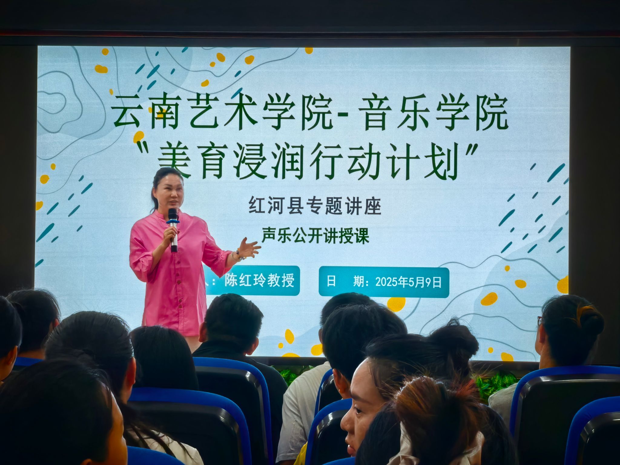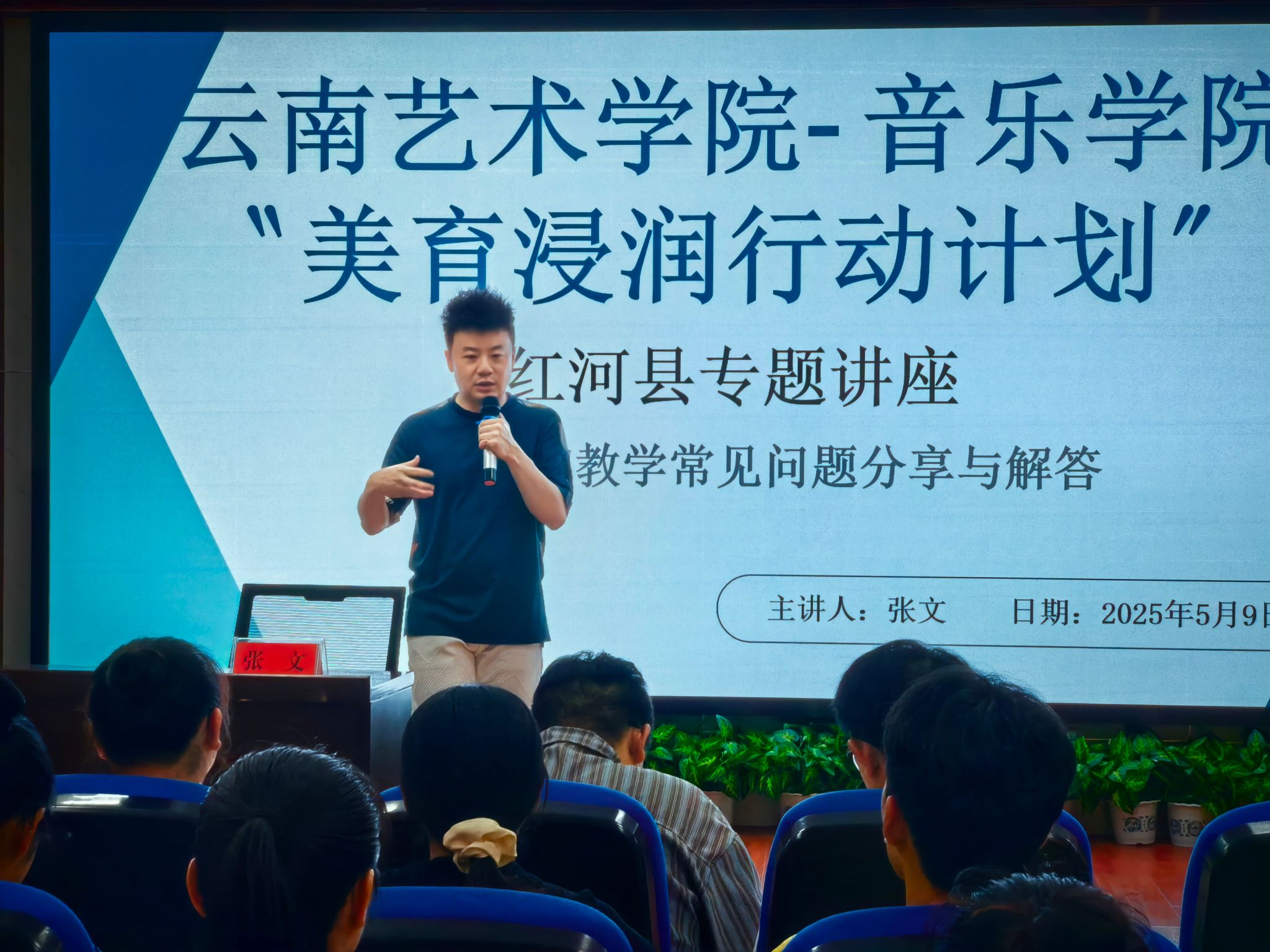 为认真贯彻全省教育工作会议精神,落实落细美育浸润行动计划,2025年5月10日,云南艺术学院人人干人人看陈红玲教授、张文博士到红河县开展“美育浸润行动”音乐教师能力提升培训。本次美育专题培训由红河县教育体育局与云南艺术学院人人干人人看联合举办。