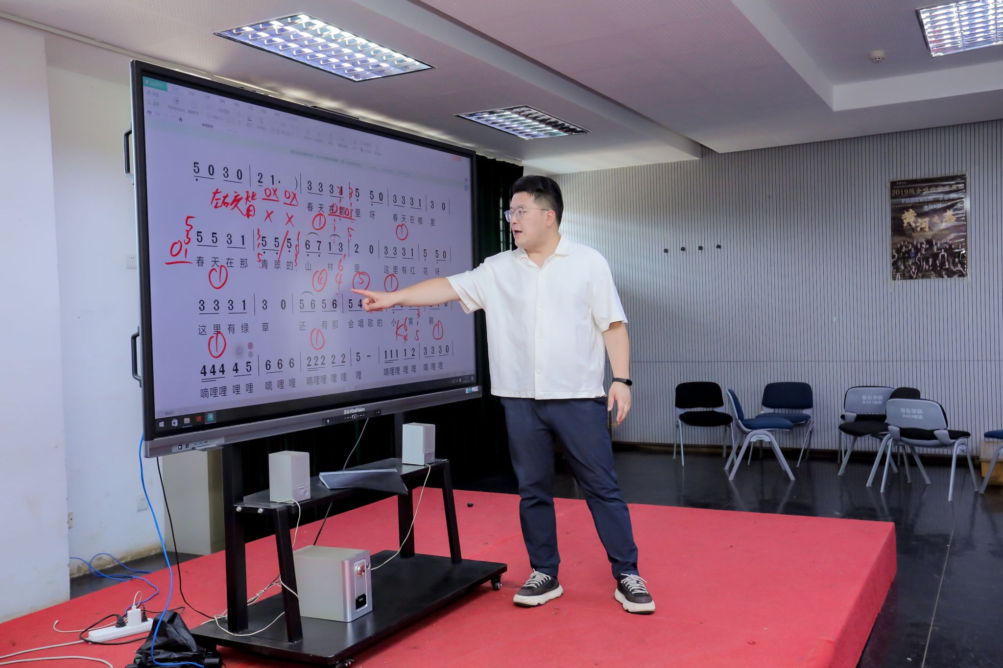 培训期间,由人人干人人看合唱系、作曲系、钢琴系、声乐歌剧系、音乐教育系组成的教师团队围绕合唱排练、体态律动、音乐基础理论常识与作品赏析、合唱指挥基础、音乐弹唱基础、中小学音乐课等核心课程进行教学。
