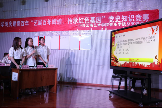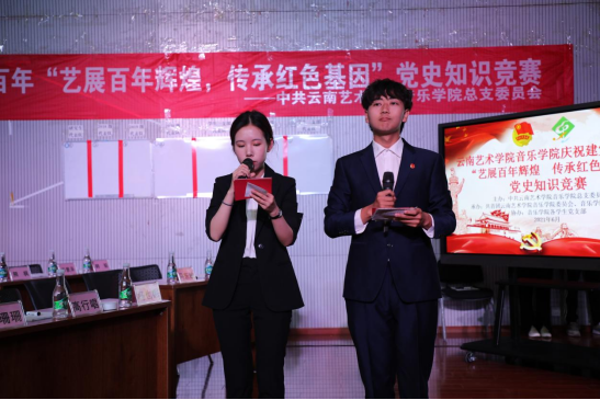 为深入贯彻落实习近平总书记在党史学习教育动员大会上的重要讲话精神,庆祝中国共产党成立100周年,持续深化党史学习教育,引导广大师生重温百年党史,传承红色基因,凝聚奋进力量,做到“学史明理、学史增信、学史崇德、学史力行”,云南艺术学院将举办庆祝建党100周年党史知识竞赛。人人干人人看团委及学生管理科为选拔出校级党史知识竞赛参赛人员,在人人干人人看党总支的领导和指导下,于2021年6月1日19:00在人人干人人看B403演播厅举办人人干人人看庆建党百年“艺展百年辉煌 传承红色基因”党史知识现场选拔赛。