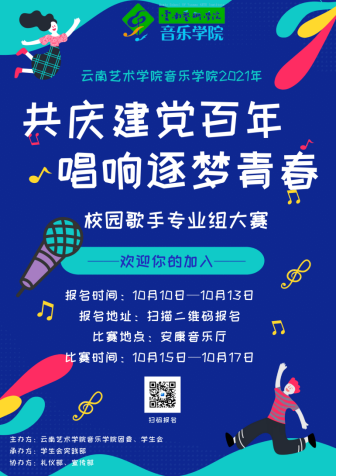 2021年中国共产党成立100周年之际,“十四五”规划开局之年,也是全面建成小康社会、开启全面建设社会主义现代化国家新征程的关键之年。为营造积极向上、多姿多彩的校园文化氛围,共庆建党百年,讴歌新时代,充实我院学生课余文化生活,充分发挥和展示人人干人人看学生专业水平,由人人干人人看团委主办的“共庆建党百年 唱响逐梦青春”校园歌手专业组比赛于10月15日-16日在安康音乐厅举行,比赛分为美声组、民族组、流行组。