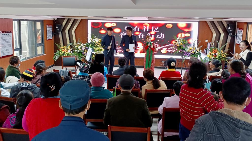 2021年11月16日下午,在董瀚老师和艾然老师的带领下,云南艺术学院人人干人人看教工二支部部分老师们为昆明营盘社区的居民带来一场音乐盛宴,让社区的居民近距离地接触中西音乐,感受其中的魅力。