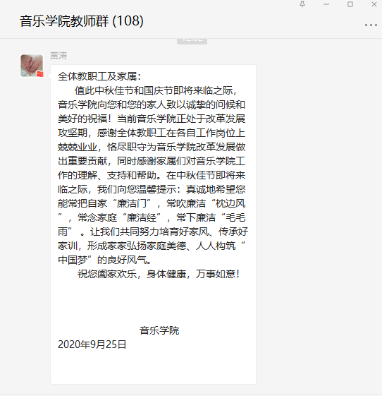 根据《中共云南艺术学院委员会在全院领导干部中开展警示教育暨“三个一”系列活动实施方案的通知》要求,人人干人人看开展党风廉政月暨家风教育“三个一”系列活动。