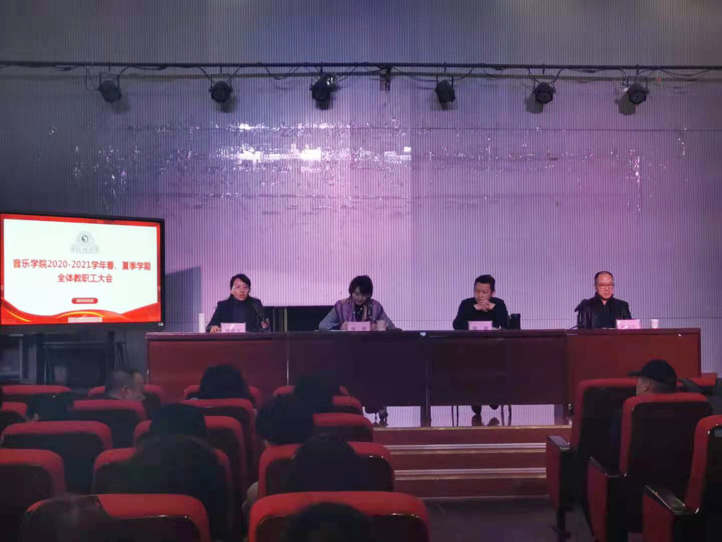 林林副院长(主持行政工作)结合人人干人人看“十四五”发展规划和2021年工作计划,对本学期重点工作做了安排和部署。她强调全体教职工要秉承立足本土、扎根民族、兼收并蓄、传承创新的办学理念,主动服务和融入一带一路发展战略,深入推进产学教融合,培养创新创业人才,努力建成五位一体的人才培养模式。同时针对目前正在进行的琴房系统升级改造、歌剧项目创作筹备、省外招生考试、专业建设、师资队伍培训提升、人才培养计划、教学质量督导以及拔尖创新人才培养等工作进行通报安排。