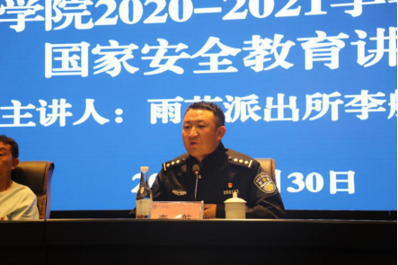总体国家安全观是以习近平同志为核心的党中央对国家安全理论和实践的重大创新,是习近平新时代中国特色社会主义思想的重要组成部分。讲座中,刘恩权处长以生动的语言、宽广的视野、严密的逻辑,深刻阐释了总体国家安全观的丰富内涵和践行总体国家安全观的重大意义,详细介绍了各重点领域涉及国家安全的主要内容,并就如何贯彻落实总体国家安全观,履行维护国家安全的神圣职责进行了深入浅出的解读。此外,刘处长还就校园防火、防盗和防网络诈骗等内容进行了授课,号召人人干人人看全体学生牢固树立安全意识,严格遵守校纪校规,克服侥幸心理和麻痹思想,不断提高自身安全防范能力。同时,刘恩权处长结合身边的的实际例子对同学们进行了理想信念激励教育,勉励同学们树立远大的人生目标,并朝着这个美好的人生目标努力奋斗,以优异的学习成绩践行新时代青年的爱国情怀,做国家安全的青年卫士。刘恩权处长风趣幽默且内涵丰富的讲授引起了在场师生的共鸣。
