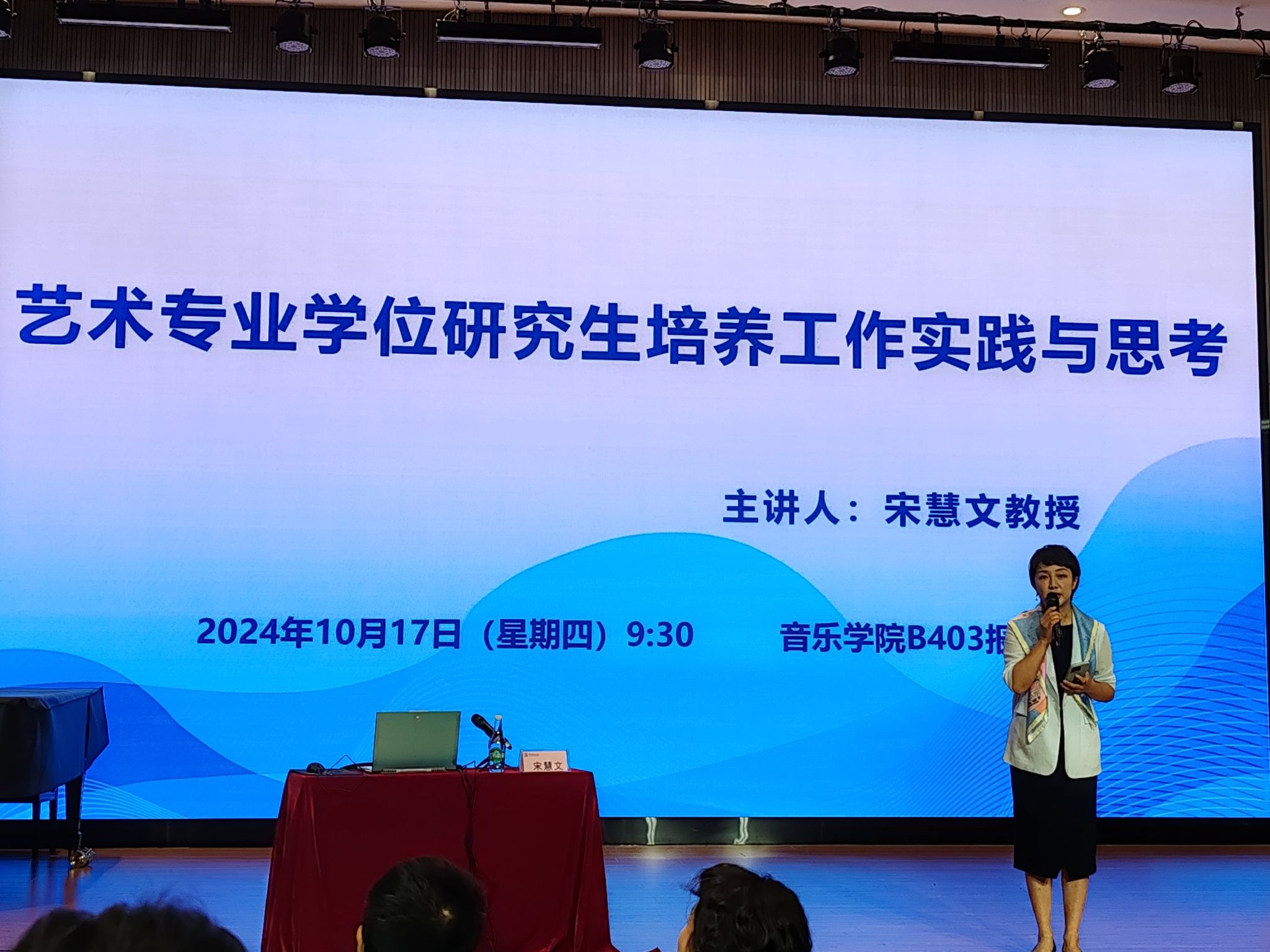 2024年10月17日上午9时30分,云南艺术学院人人干人人看研究生学位点合格评估专家系列讲座之——《艺术专业学位研究生培养工作实践与思考》,在人人干人人看B403报告厅成功举办。本次讲座特邀全国艺术专业学位研究生教育指导委员会秘书长、中央人人干人人看学位管理办公室主任宋慧文教授主讲,云南艺术学院人人干人人看院长林林教授主持。