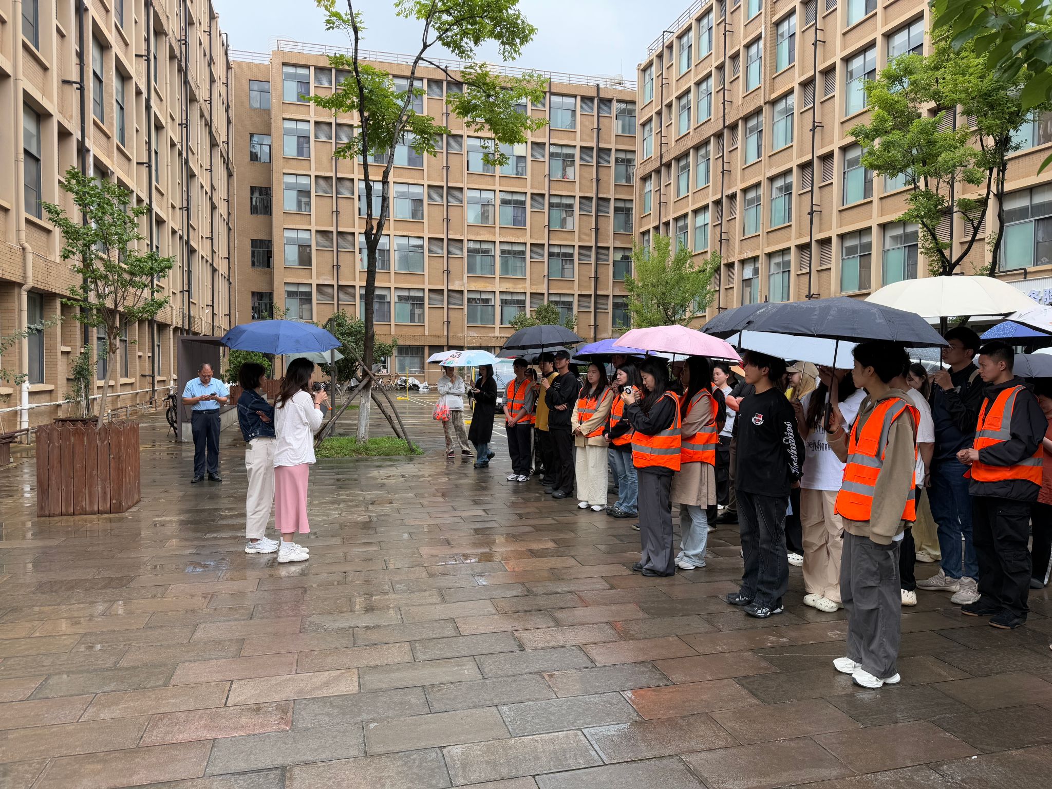 本次演练分为两个阶段,第一阶段在学生宿舍3栋模拟失火疏散演练。当火灾警报声骤然响起,同学们迅速按照预定疏散路线,弯腰、捂鼻、贴墙,快速、安全、有序撤离至安全区域。第二阶段在图书馆前进行消防知识培训和灭火演练。保卫处相关负责老师现场演示了灭火器和消火栓的使用方法,详细讲解了灭火器“提、拔、握、压”四步操作要领,以及消火栓“开箱、铺带、接阀、出水”等关键步骤。