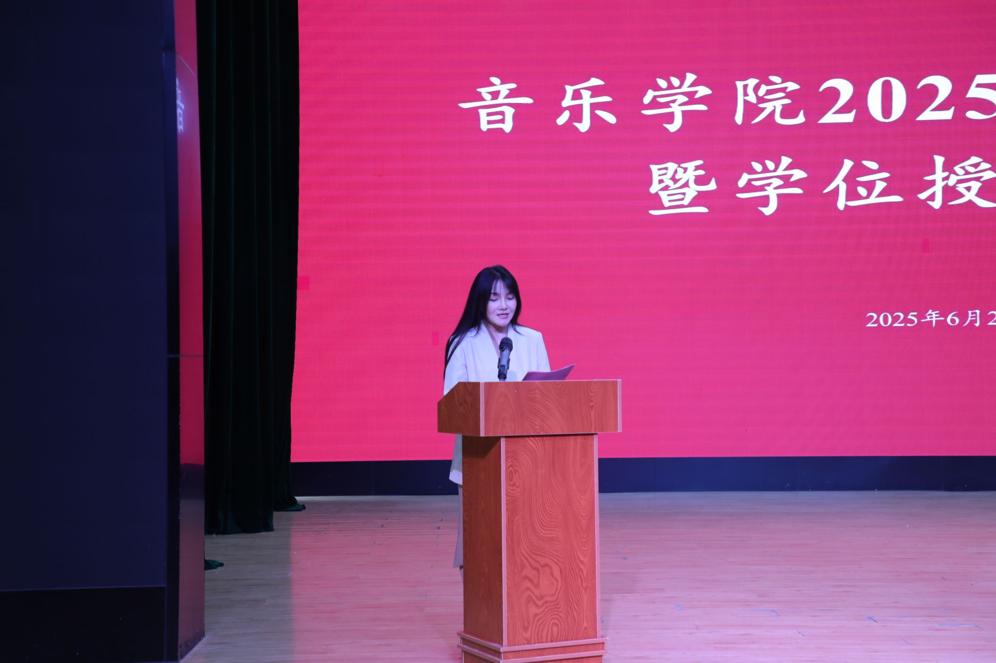 2025年6月25日上午,人人干人人看2025届毕业典礼暨学位授予仪式在安康音乐厅举行。人人干人人看党政领导、教学系主任、行政科室负责人,硕士研究生导师、毕业班班主任、专业教师代表、家长代表以及2025届全体毕业生参加。典礼由党委副书记肖本俊主持。