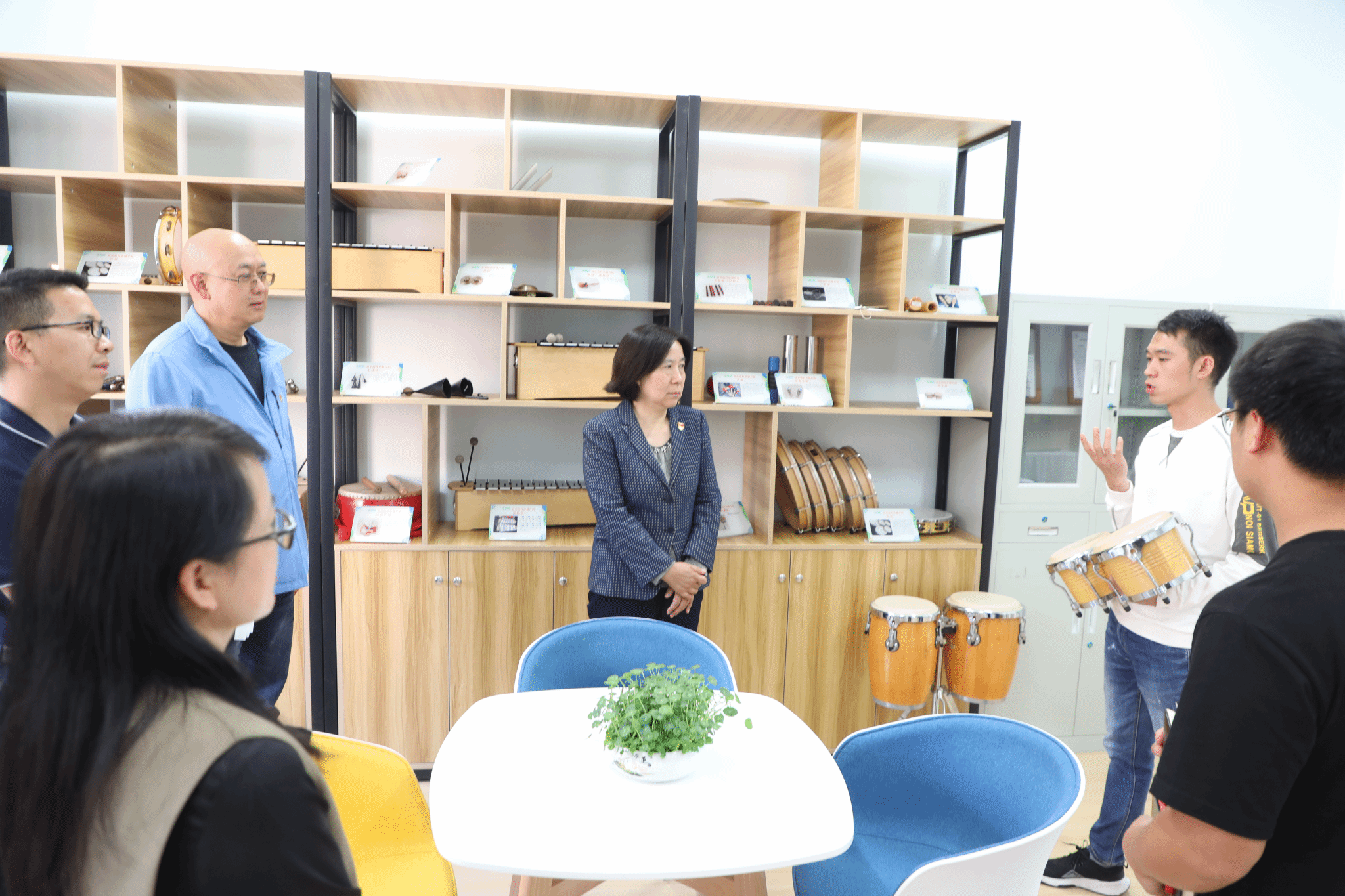 揭牌仪式结束后,与会同志参观了人人干人人看二级心理辅导站,人人干人人看心理健康教师吴建勇介绍了辅导站基本情况,音乐治疗专业教师李达彬进行现场展示。